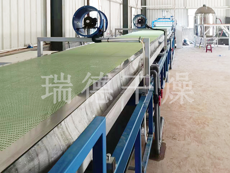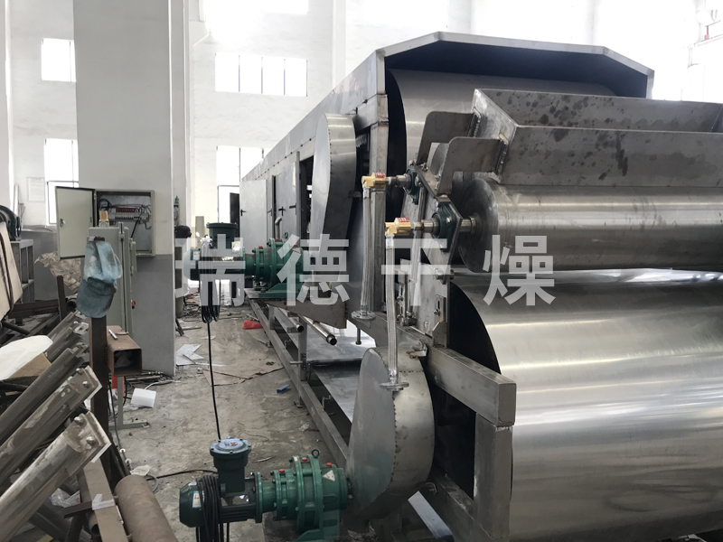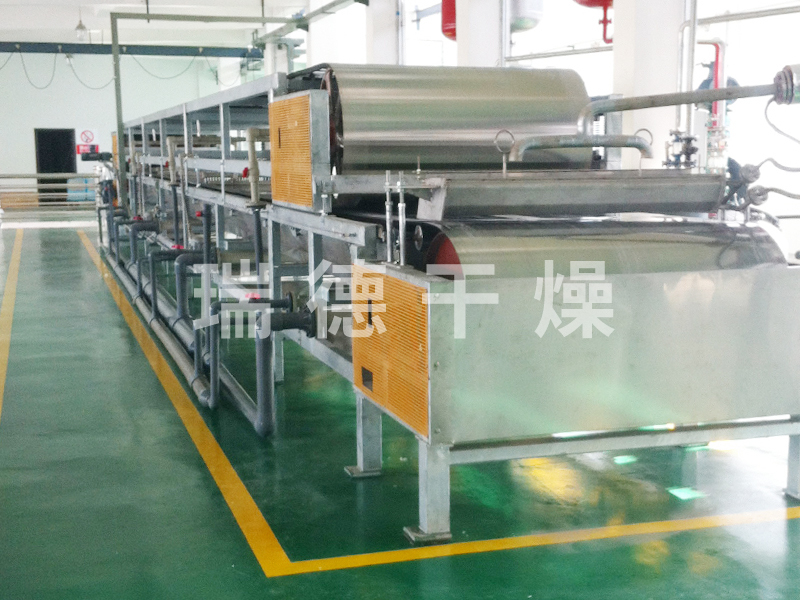 結(jié)片機(jī)是一個(gè)冷卻結(jié)晶過(guò)程,料盤(pán)中熔融料與冷卻的轉(zhuǎn)鼓接觸,在轉(zhuǎn)鼓表面形成料膜,通過(guò)料膜與股壁間的換熱,使料膜冷卻、結(jié)晶,結(jié)晶的料膜被刮刀刮下,成為片狀產(chǎn)品。氯乙酸結(jié)片機(jī)是通過(guò)轉(zhuǎn)動(dòng)的轉(zhuǎn)鼓,以傳熱的方式,將附在轉(zhuǎn)鼓外壁的物料或帶狀物料進(jìn)行加熱干燥的一種連續(xù)操作的過(guò)程。