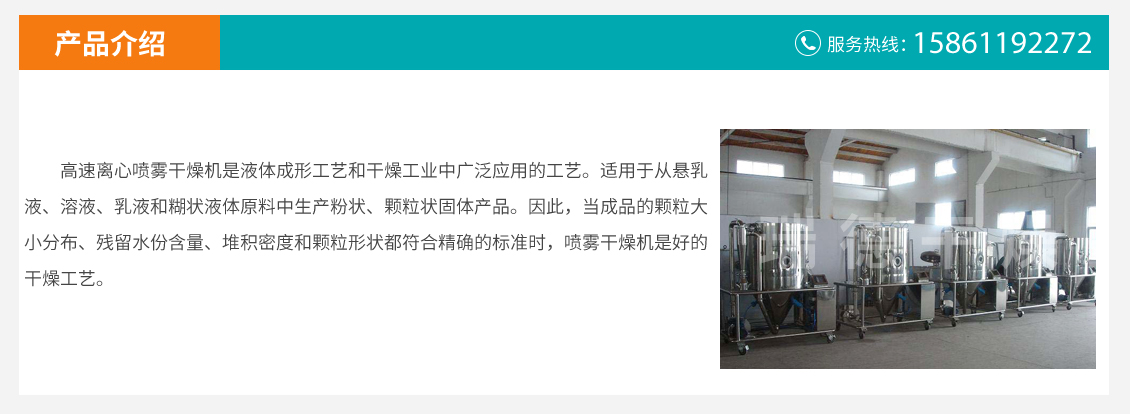產(chǎn)品描述:高速離心噴霧干燥機(jī)是液體成形工藝和干燥工業(yè)中廣泛應(yīng)用的工藝。適用于從懸乳