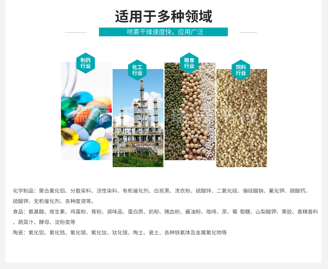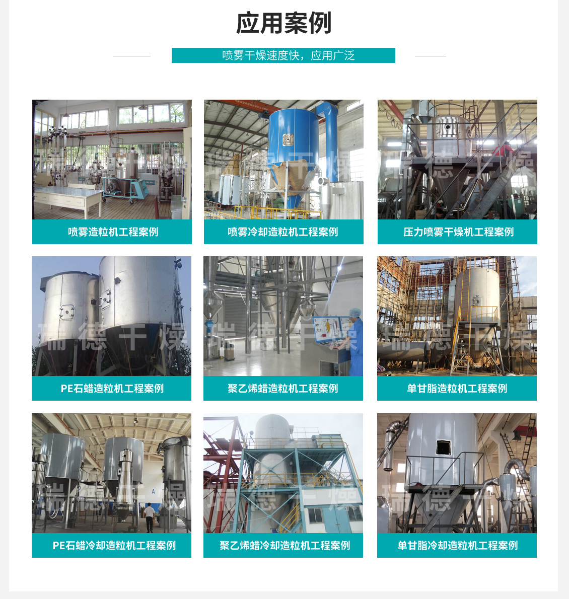 液、溶液、乳液和糊狀液體原料中生產(chǎn)粉狀、顆粒狀固體產(chǎn)品。因此,當(dāng)成品的顆粒大