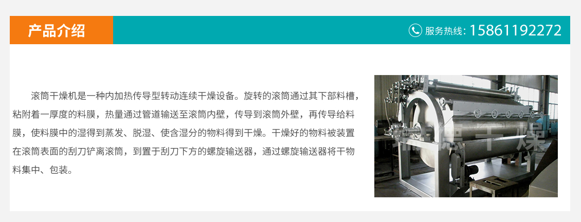 產(chǎn)品描述:滾筒干燥機(jī)是一種內(nèi)加熱傳導(dǎo)型轉(zhuǎn)動(dòng)連續(xù)干燥設(shè)備。旋轉(zhuǎn)的滾筒通過(guò)其下部料槽,