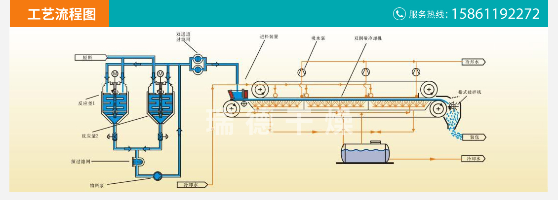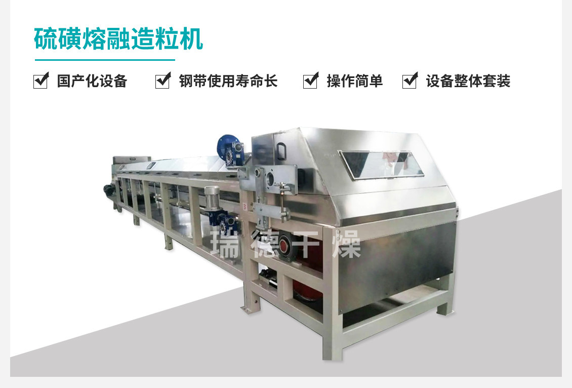 行著的冷卻鋼帶上,冷卻鋼帶下方噴有冷卻水,鋼帶上方硫磺液滴經過冷卻,固化成扁