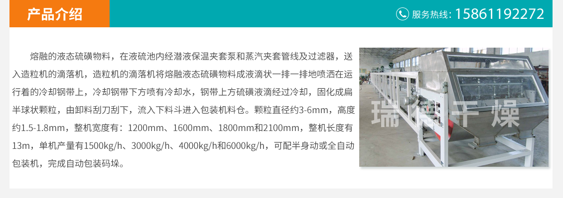 入造粒機的滴落機,造粒機的滴落機將熔融液態硫磺物料成液滴狀一排一排地噴灑在運