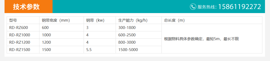 13m,單機產量有1500kg/h、3000kg/h、4000kg/h和6000kg/h,可配半身動或全自動