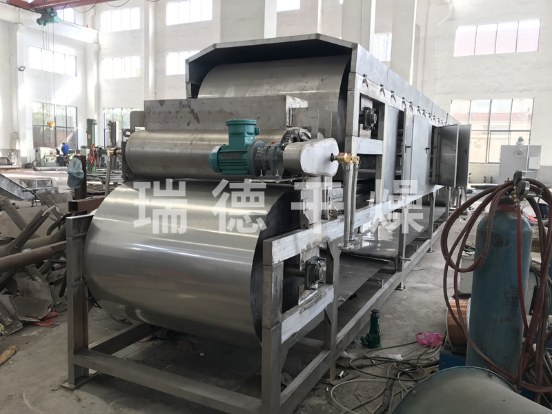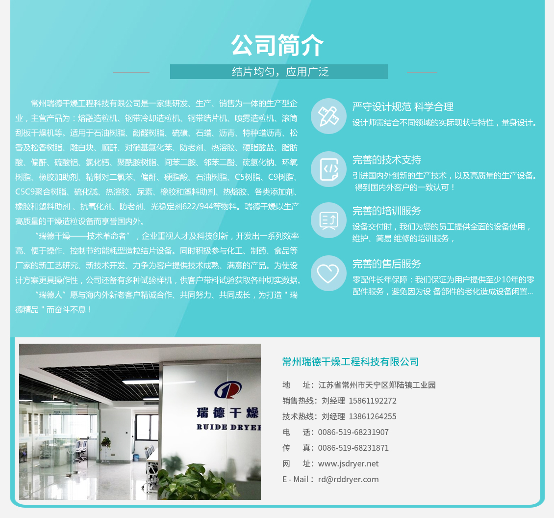 產(chǎn)品描述:結(jié)片機是一個冷卻結(jié)晶過程,料盤中熔融料與冷卻的轉(zhuǎn)鼓接觸,在轉(zhuǎn)鼓表面形成料膜,通過料膜與股壁間的換熱,使料膜冷卻、結(jié)晶,結(jié)晶的料膜被刮刀刮下,成為片狀產(chǎn)品。氯乙酸結(jié)片機是通過轉(zhuǎn)動的轉(zhuǎn)鼓,以傳熱的方式,將附在轉(zhuǎn)鼓外壁的物料或帶狀物料進行加熱干燥的一種連續(xù)操作的過程。